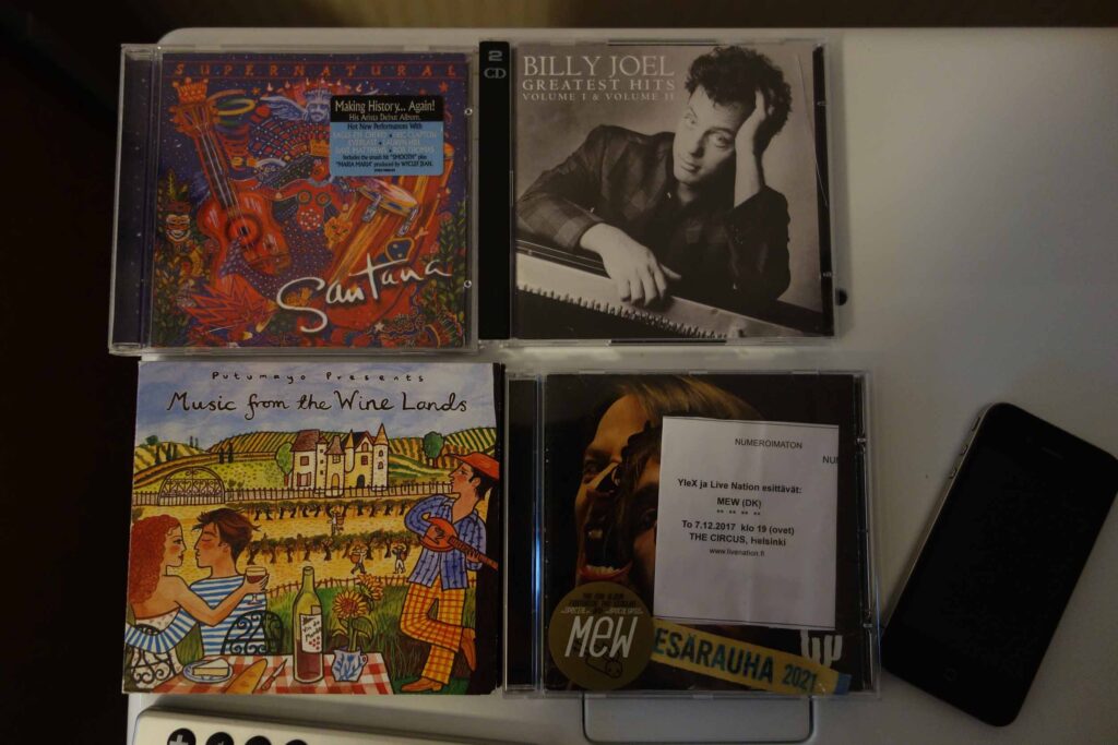 Musiikki kuuluu oleellisena osana meidän kotoiluun. Viime viikkoina ollaan kuunneltu alakerrassa esimerkiksi näitä cd-levyjä tunnelmasta riippuen: Santanan Supernatural (aina ollut syksyisen pimeän illan ilo), Billy Joelin Greatest hits (tunnelmointiin), Mewin And the glass handed kites (viime kesän konsertin muisteloissa) ja Music from the wine Lands (parasta ruuasta ja viinistä nautiskellessa). Yläkerrassa pyörii vinyyli usein levylautasella. Siinä on sellaista leppoisaa kotoilun makua.