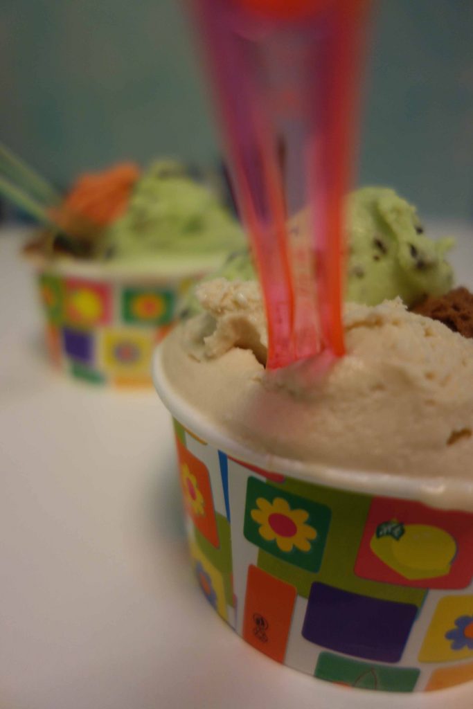 Jokaiseen meidän viikonloppuun kuuluu myös kaupunkireissu, jolloin tavallisesti poikkeamme ainakin italialaiseen jädepaikkaan eli Nuvoleen Hansakorttelissa. Sieltä saa aitoa italialaista artesaanijäätelöä – ah niin hyvää. Täytyy kyllä tunnustaa, että koko talvi läpeensä ollaan siellä kuljettu – ei siihen ole tarvittu aurinkoa eikä kevättä eikä kesää… Maistuu aina. Tässä päivän valikoima. Kaupan päälle vielä iloista, vilkasta italialaista keskustelun solinaa 🙂