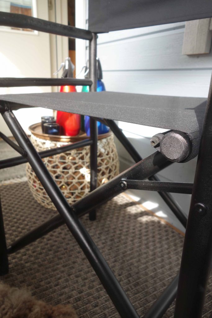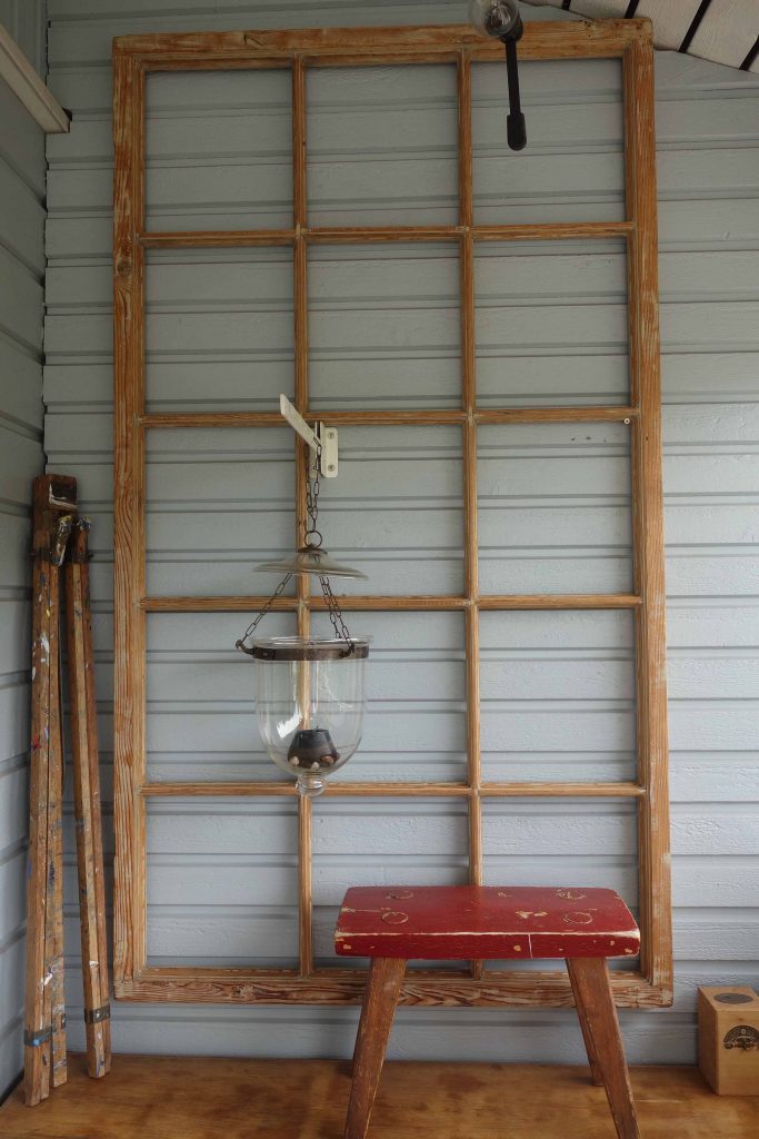 Vaikka ihastuin ulkonäköön niin myös laadukas rakenne vaikutti asiaan. Jalkarakenne oli kuin taideteos – samalla yksinkertainen ja kuitenkin kuin kasa syömäpuikkoja! Kun tuolit olivat parvekkeella, mieleeni tulikin seuraavaksi, että varastoon oli mennyt meidän vanha ikkunapoka viime vessafiksauksen jälkeen (klik). (Harmitti suunnattomasti silloin, kun en keksinyt sille hyvää uutta sijoituspaikkaa. Se on kuitenkin kulkenut meidän mukana jo vuosikymmeniä.) Siinä on jotain samanlaista – rauhoittavaa ja ehkä myös sellaista japanilaistakin vivahdetta. No, sepäs haettiin ja ruuvattiin hetimiten peräseinälle. Sijainti määrittyi vaateripustimen mukaan, koska sitä tarvitaan aina välillä vaatteita tuuleteltaessa. Se myös toimi toisena tukipisteenä. Ei turhia reikiä seiniin.